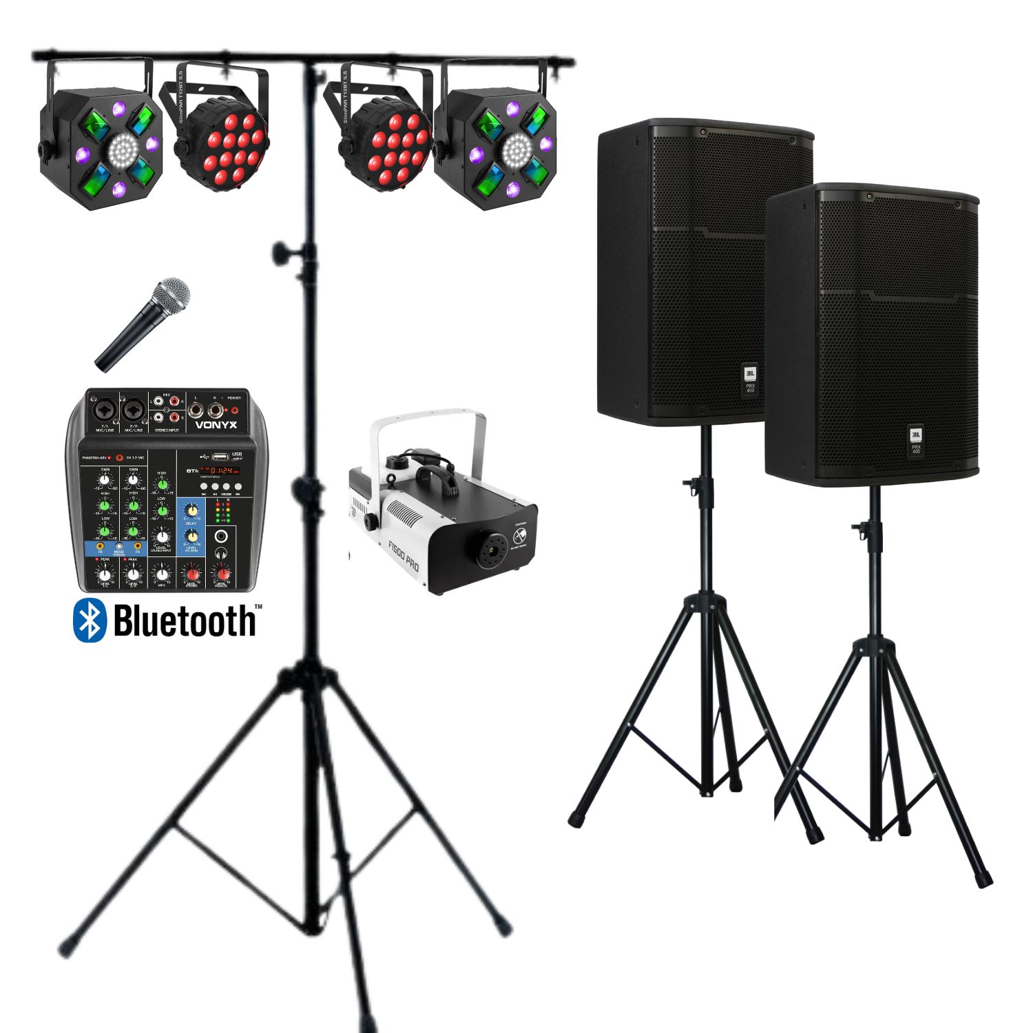 • 2 enceintes de 250 W sur trépieds